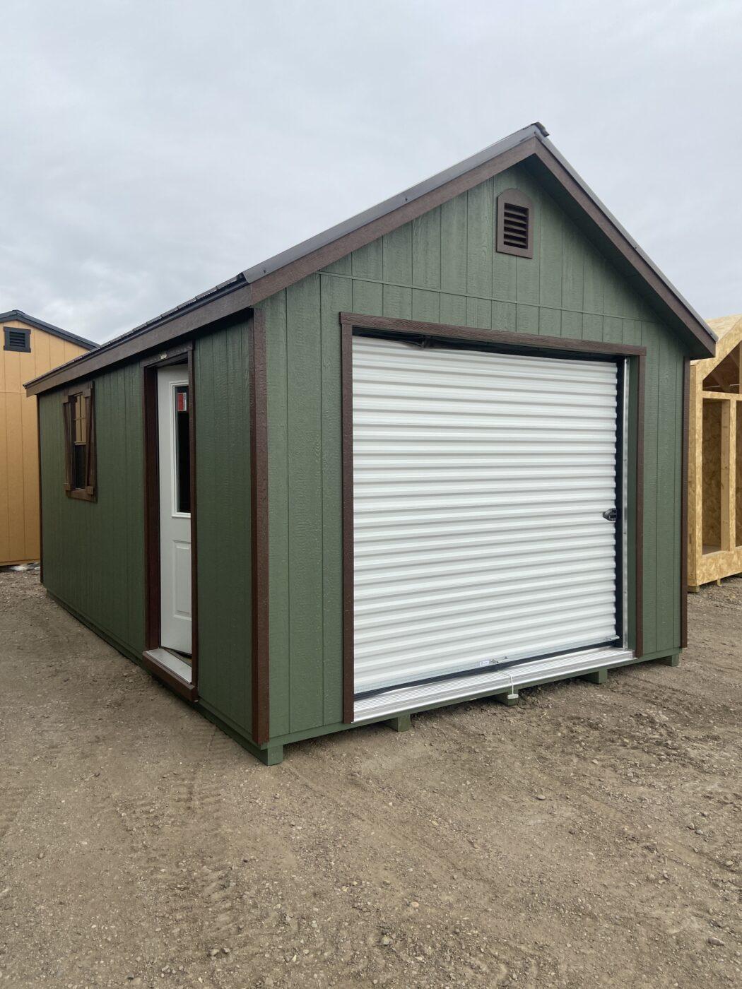 Our Castle Mountain single-car garages can be modified into an office or a workshop by customizing and adding basic electric packages, insulation, or structural options such as T&G Flooring or an exterior porch.