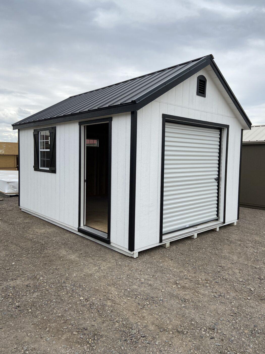 The Prestige Castle Mountain™  garage from Utah Structures is designed to elevate both the beauty and functionality of your outdoor space. With its extended eaves and gables, this shed boasts a refined, high-quality finish, while the steeper pitch roof enhances both durability and elegance. The thoughtfully placed windows, complete with charming faux shutters, invite natural light inside, creating a bright and inviting interior. Whether for vehicle storage, a workspace, or a backyard retreat, the Castle Mountain shed blends upscale aesthetics with practical design, making it a standout addition to any home or business—and the envy of your neighbors.