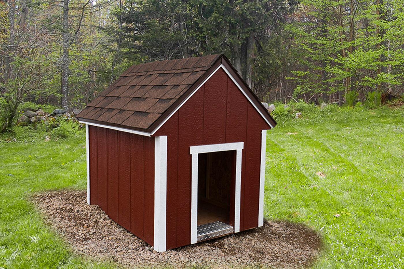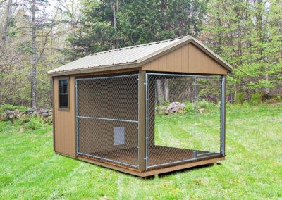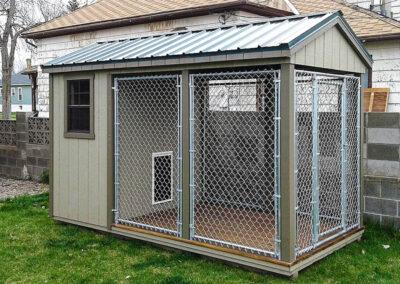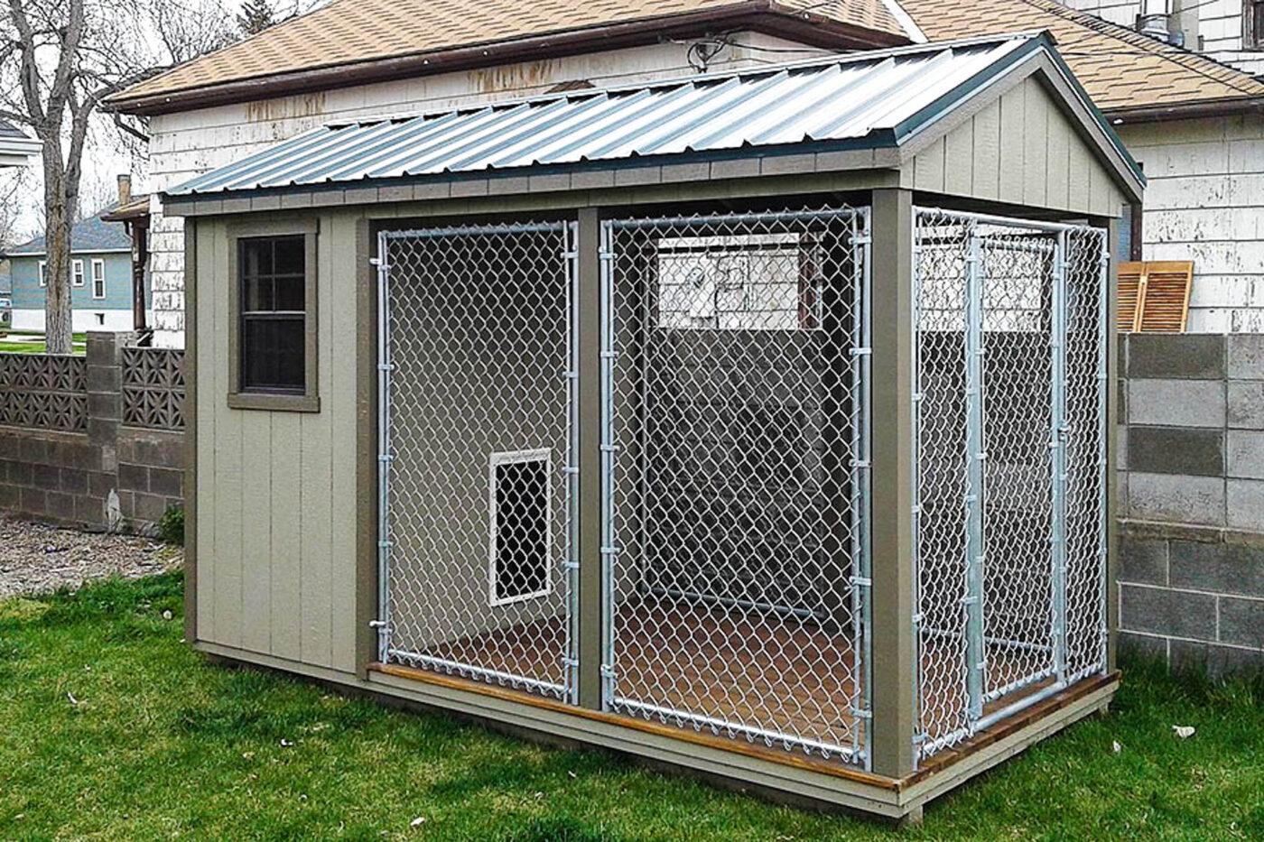 The windows and doors of an enclosed dog kennel come in various sizes and can be customized.