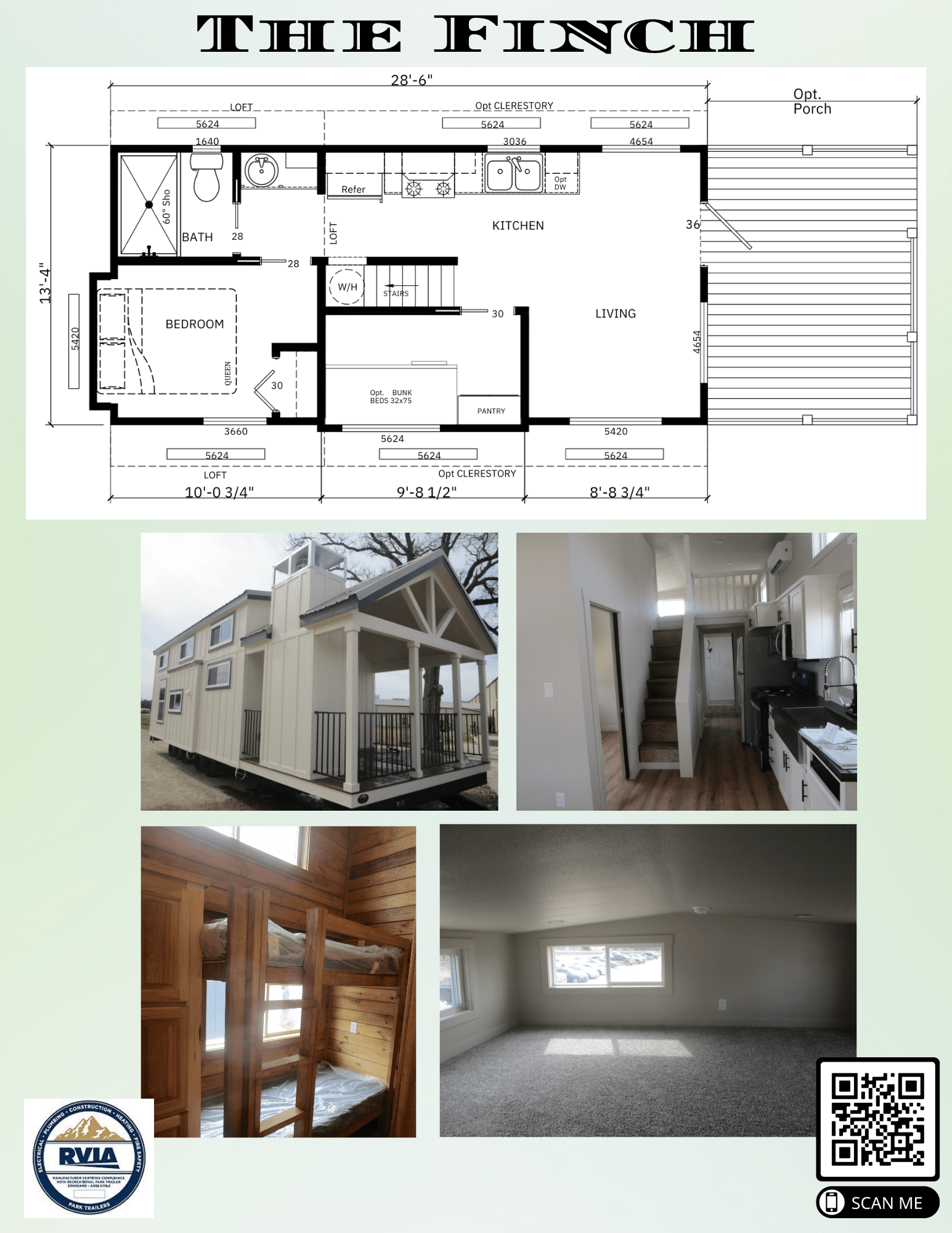 The Finch Tiny Home Park Model RV by Utah Structures is a charming and efficient living space designed for those who appreciate simplicity without sacrificing style. With its smart layout, high-quality craftsmanship, and modern finishes, The Finch offers a cozy yet functional retreat perfect for full-time living, vacationing, or rental use. This park model RV maximizes space with clever storage solutions while maintaining an open and inviting feel. Built with durability and energy efficiency in mind, The Finch is an excellent choice for anyone looking to embrace tiny home living with comfort and ease.