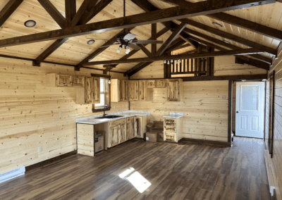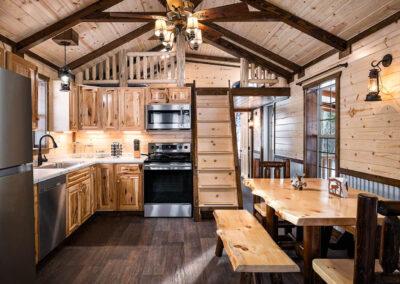 • Lofts have a 2″x6″ tongue & groove floor, log railing, and ladder