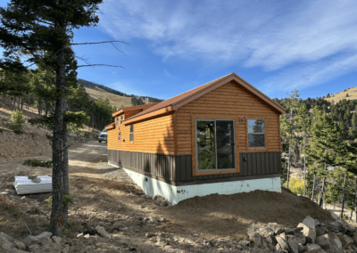 Looking for more space? The loft offers extra headroom, providing endless possibilities for design and functionality. Just to the right of the entrance, the great room seamlessly connects with the kitchen, creating a spacious and open atmosphere. On the left, you’ll find a well-equipped bathroom featuring a vanity, toilet, shower, and washer/dryer hookup. A few steps beyond leads to a cozy bedroom complete with shelves and a closet. Built to code, this prefab cabin in Montana ensures you can unwind and enjoy with peace of mind.