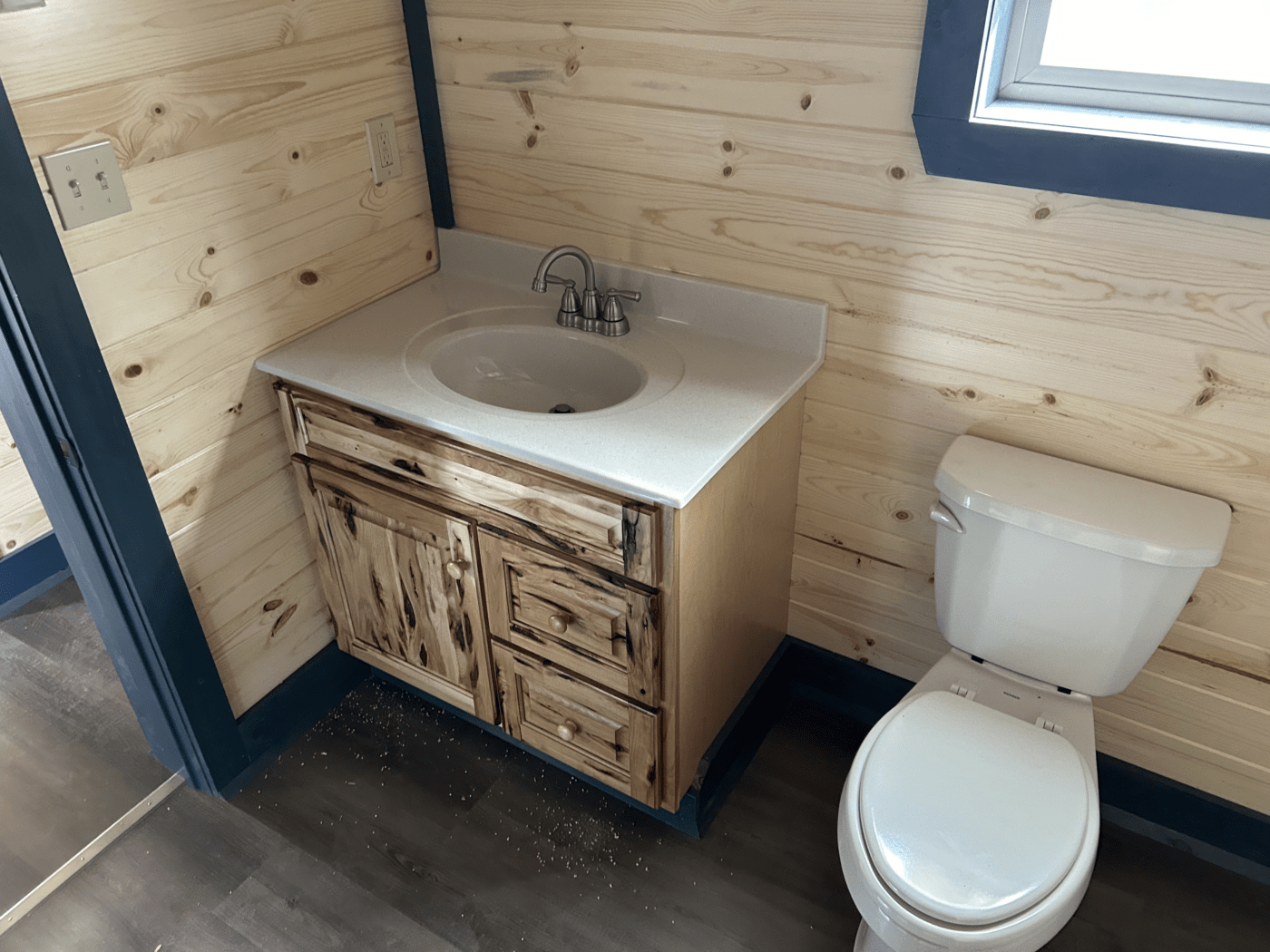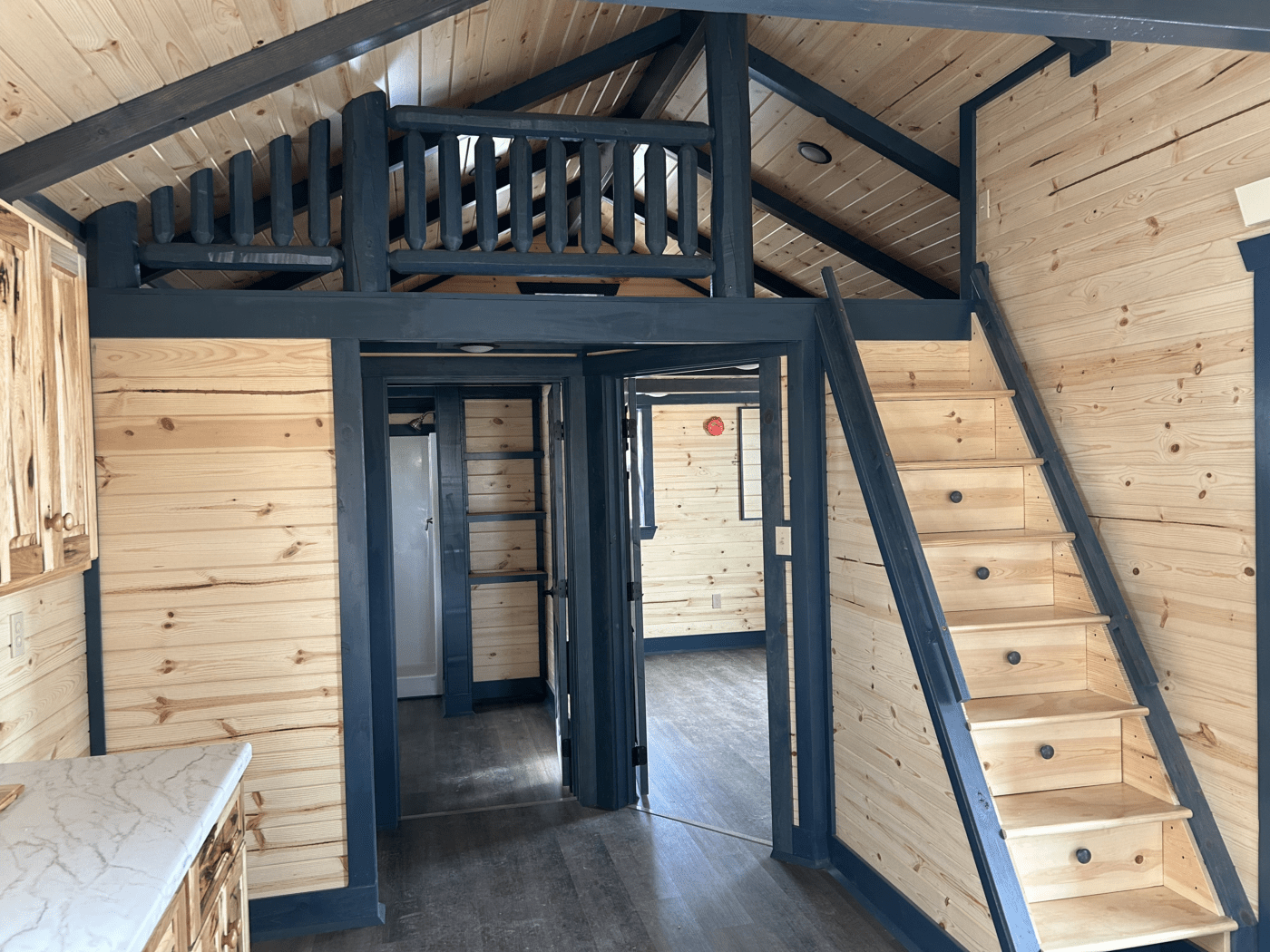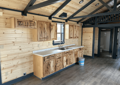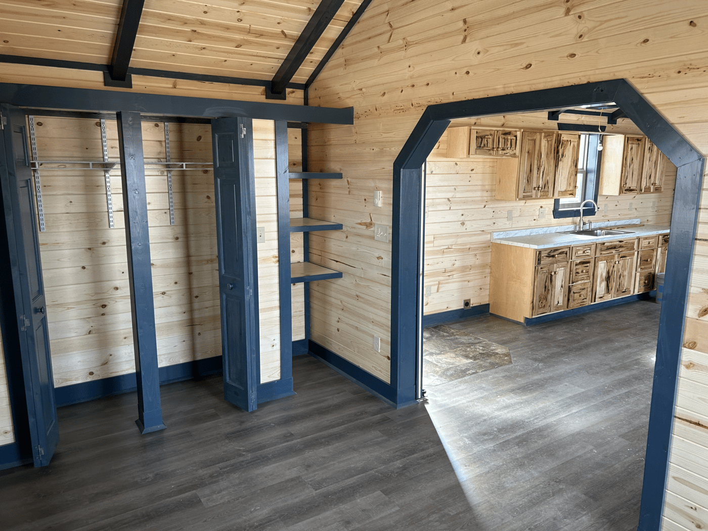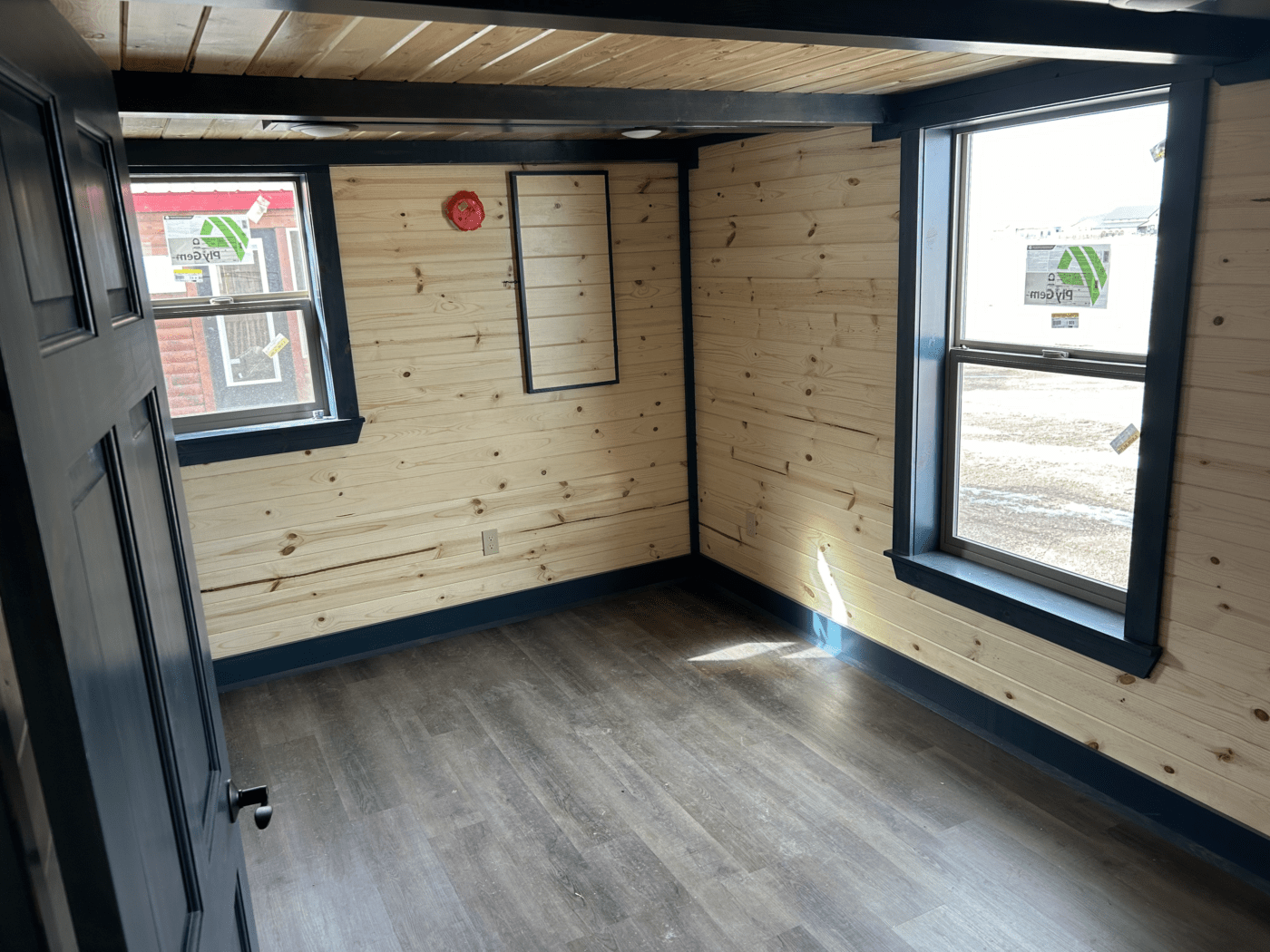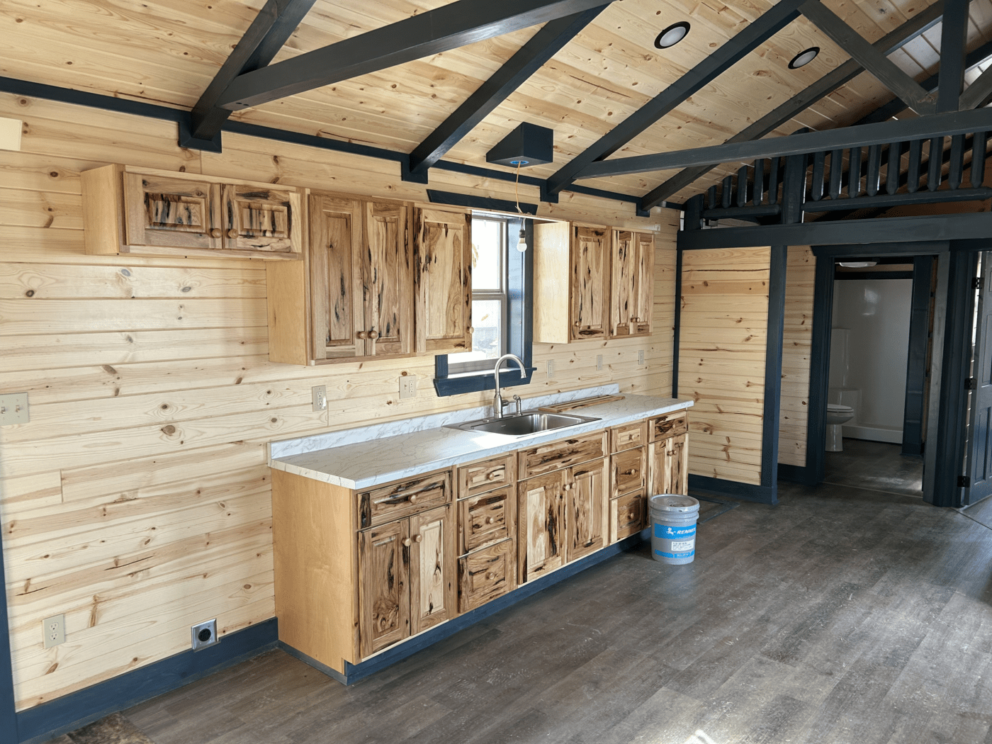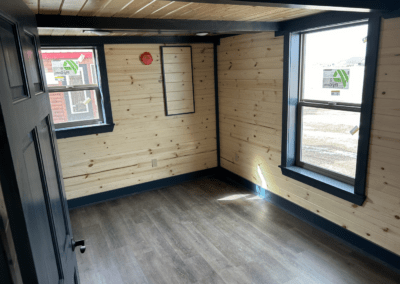 - 1″x6″ tongue and groove pine interior with a clear sealer