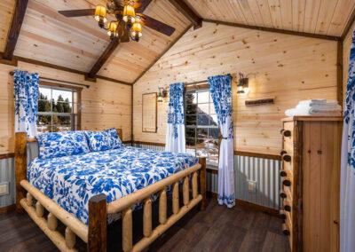 - Lofts have a 2″x6″ tongue & groove floor, log railing, and ladder