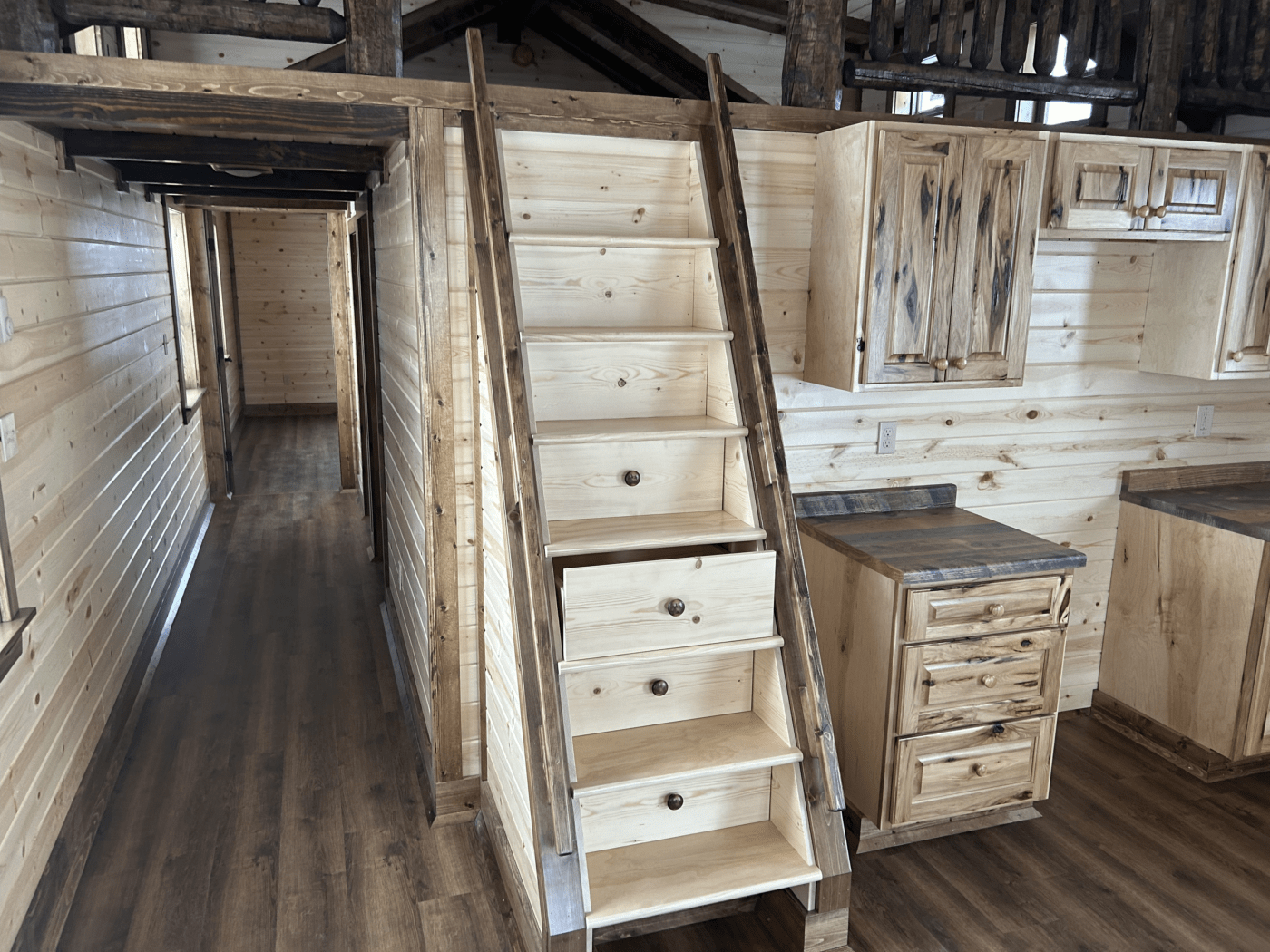 Looking for a tiny home? Although small, our Glacier G110 provides a completed home! The corner porch on this prefab cabin gives a delightful entrance to the interior, including a mudroom with washer and dryer hookups.